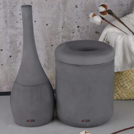 ست فرچه و سطل سرویس بهداشتی AXOR (آکسور) مدل والریا رنگ طوسی (bsetgd012)
